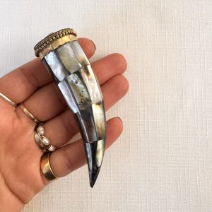 Corno Madreperla Grande Base Argento
