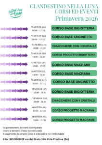 CORSI : dal 2007 offriamo corsi dedicati allo sviluppo delle tecniche di bigiotteria. I corsi si tengono nel nostro negozio, i prezzi sono comprensivi dei materiali e le insegnanti sono altamente qualificate. Lavorare in un piccolo gruppo ci permette di seguirvi passo a passo.