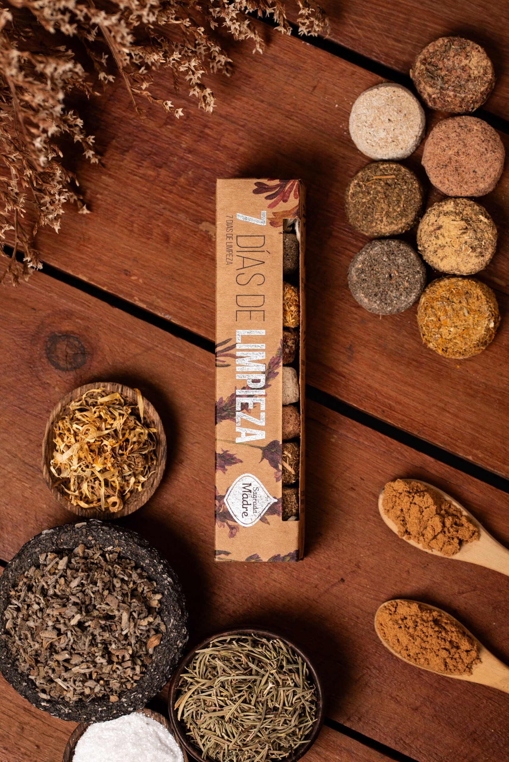 Ogni scatola contiene 7 dischi di carbone per fumigazione, decorati con fiori ed erbe aromatiche.