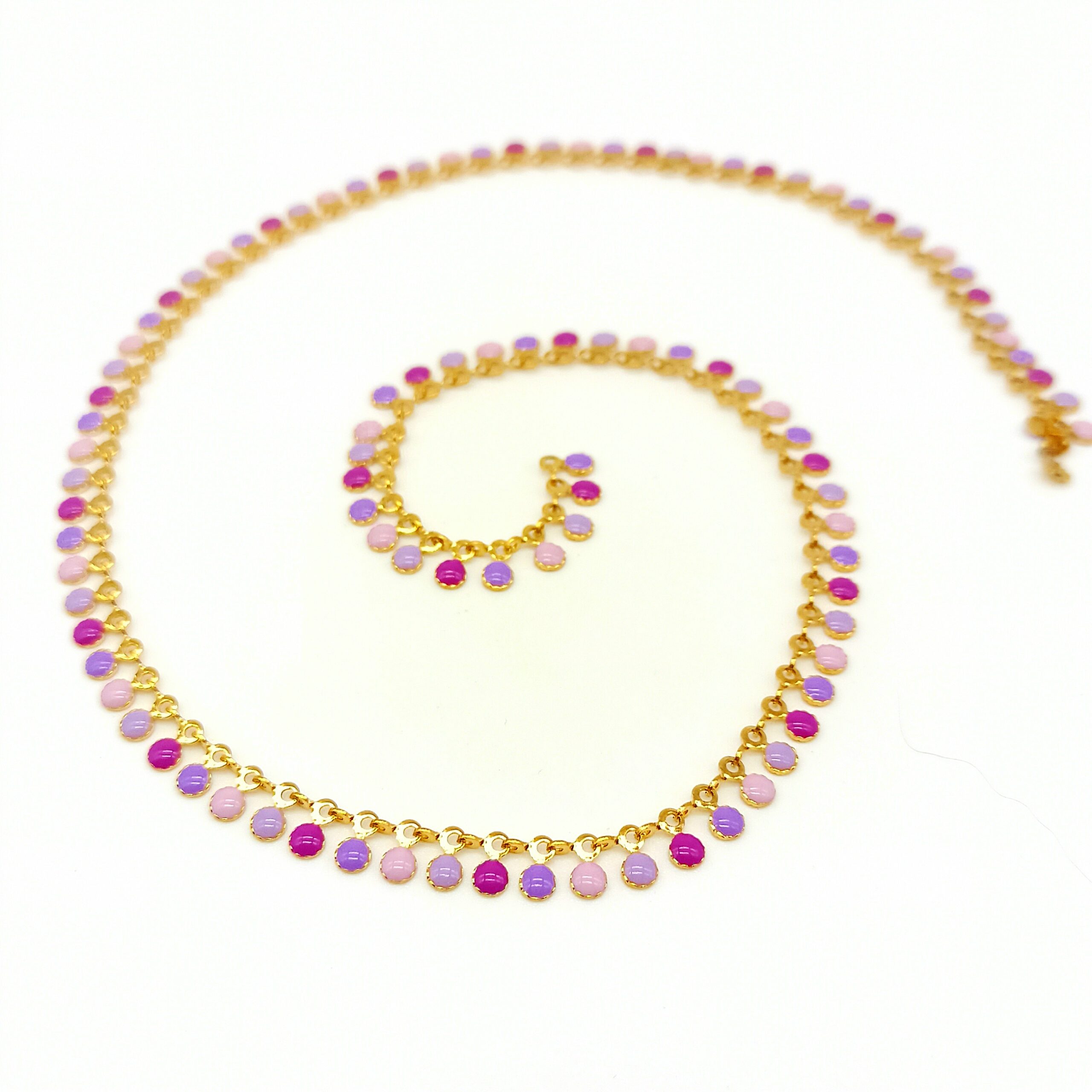 Catena in acciaio con medagliette smaltate colorate