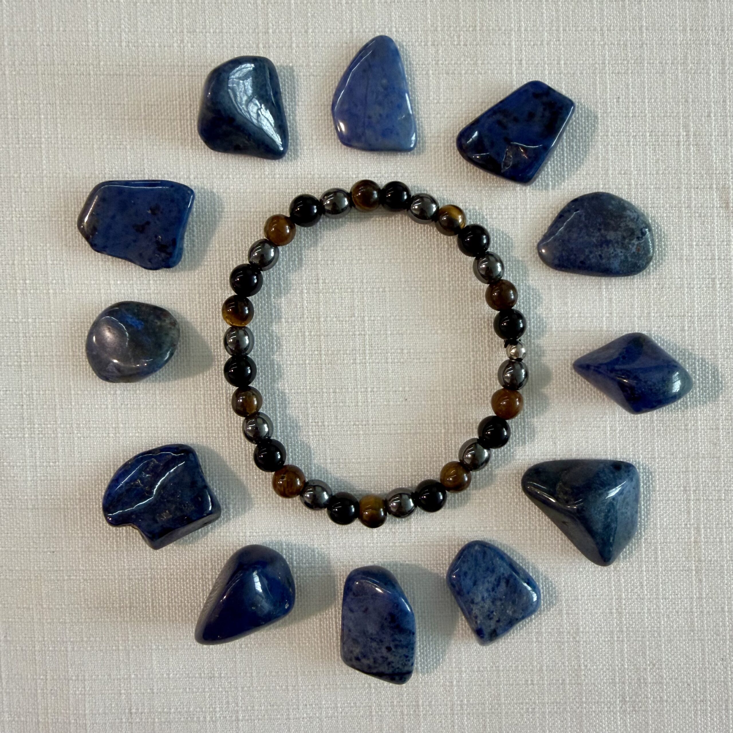 Per chi: un bracciale che combina queste tre pietre può risultare particolarmente apprezzato da chi vive situazioni di stress, da chi desidera rafforzare la propria autostima o da chi lavora in ambienti impegnativi e competitivi. La Tormalina nera è tradizionalmente associata alla protezione dalle energie negative e allo stress, mentre la Ematite è collegata al radicamento, alla stabilità e alla capacità di mantenere i piedi per terra nei momenti di confusione o agitazione. L’Occhio di tigre, invece, è spesso legato al coraggio, alla sicurezza in sé stessi e alla concentrazione.