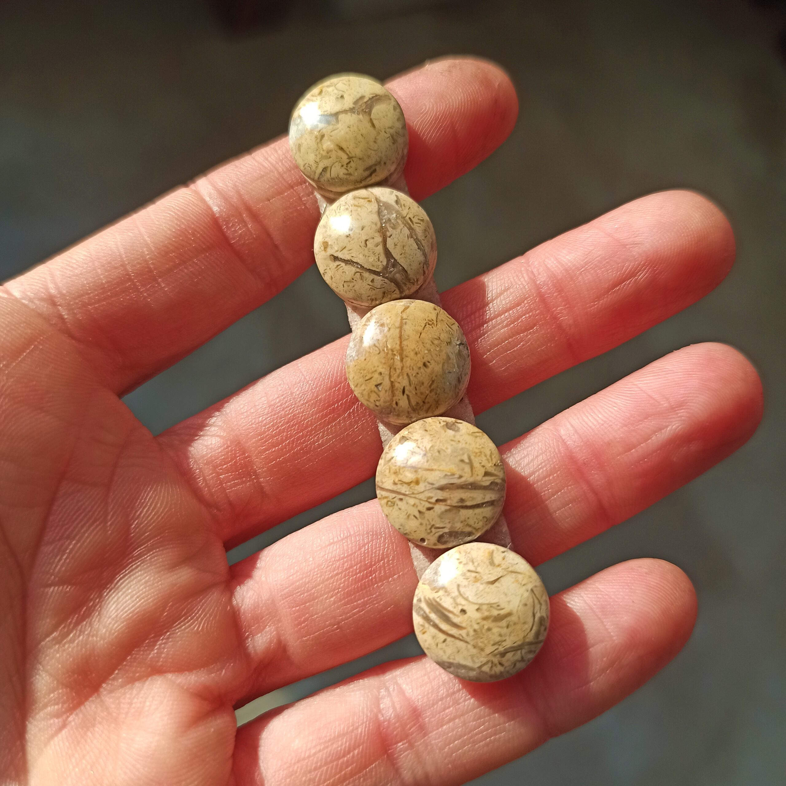 Cabochon tondo piccolo Onice beige striato