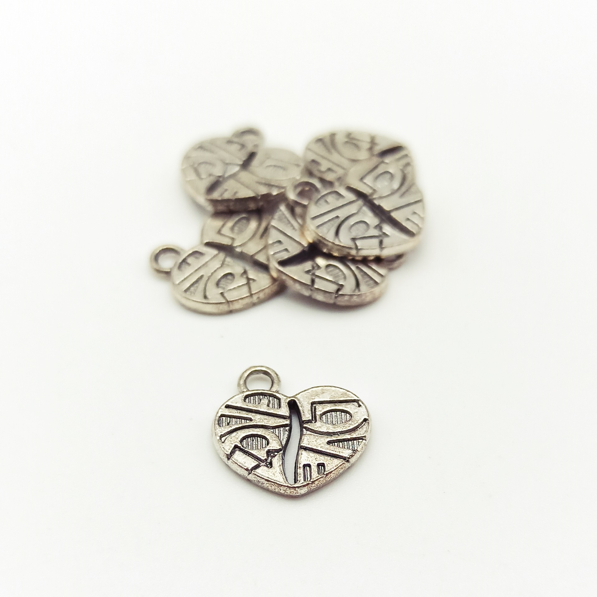 Charms argentato cuore love , 1,5 x 1,5 cm 14 pz ca.