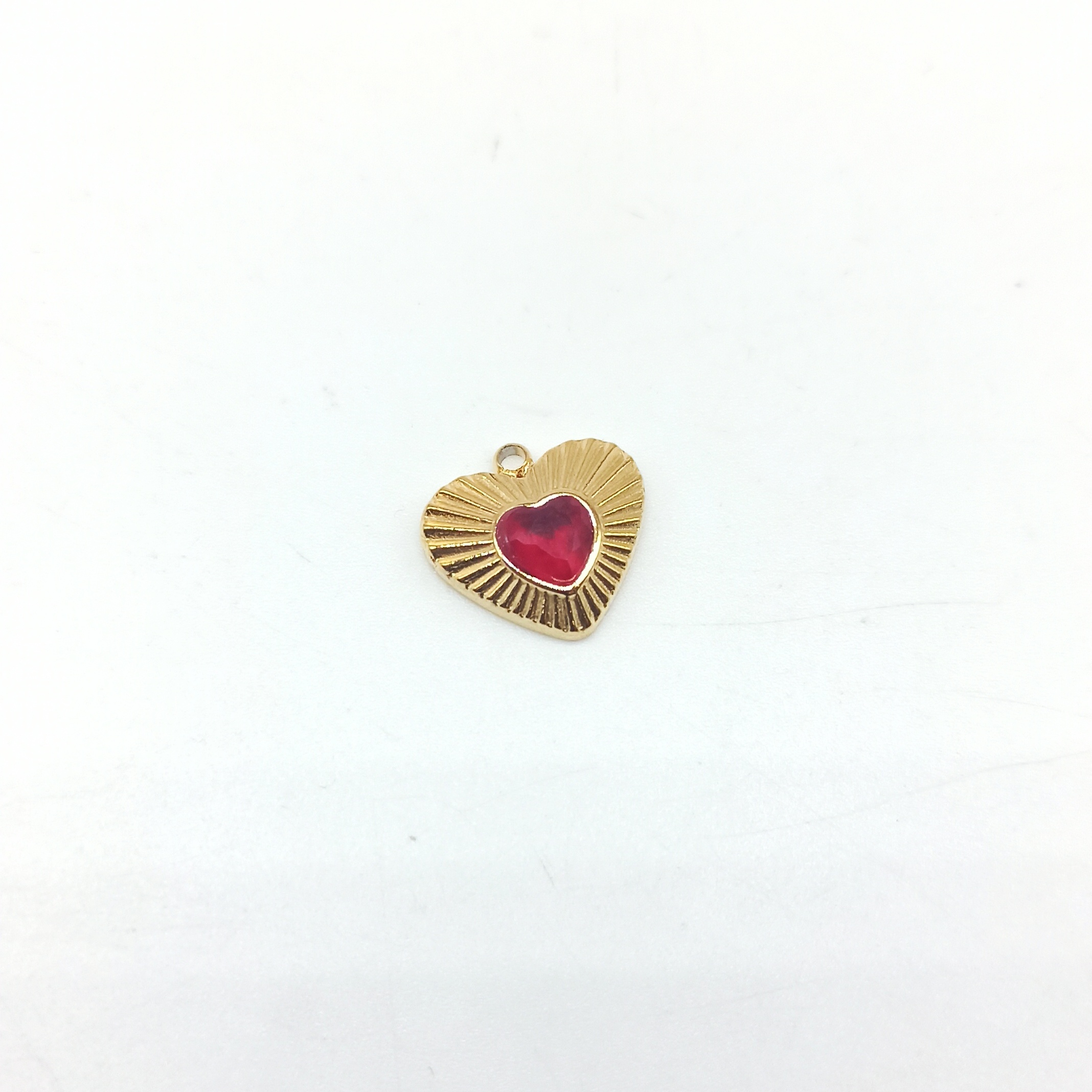 Charms Cuore dorato acciaio cubic zirconia rosso