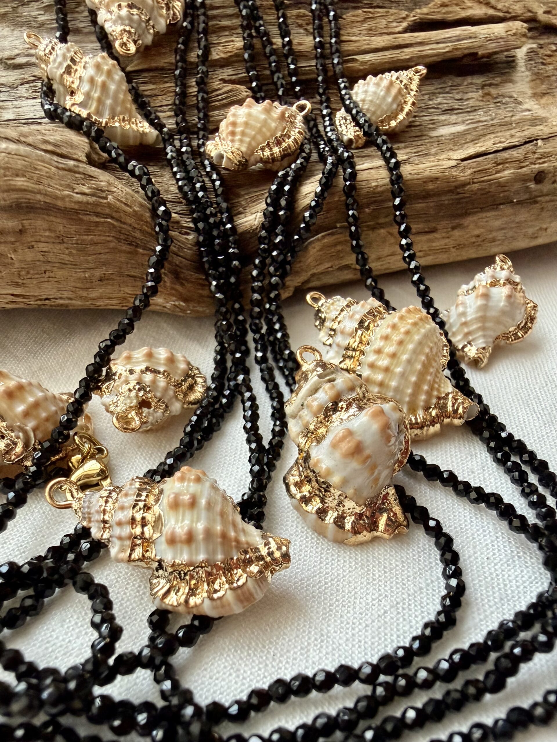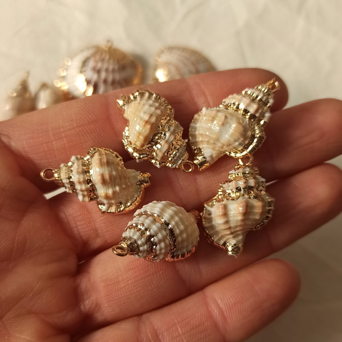 Conchiglia con bordatura in ottone dorato idelae per la realizzazione di collane decorate e bigiotteria.