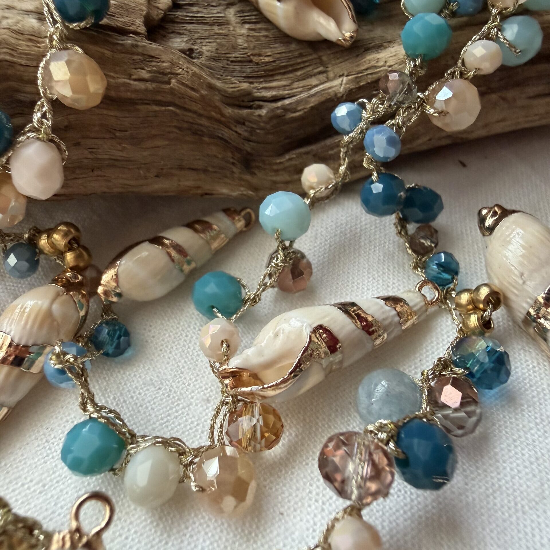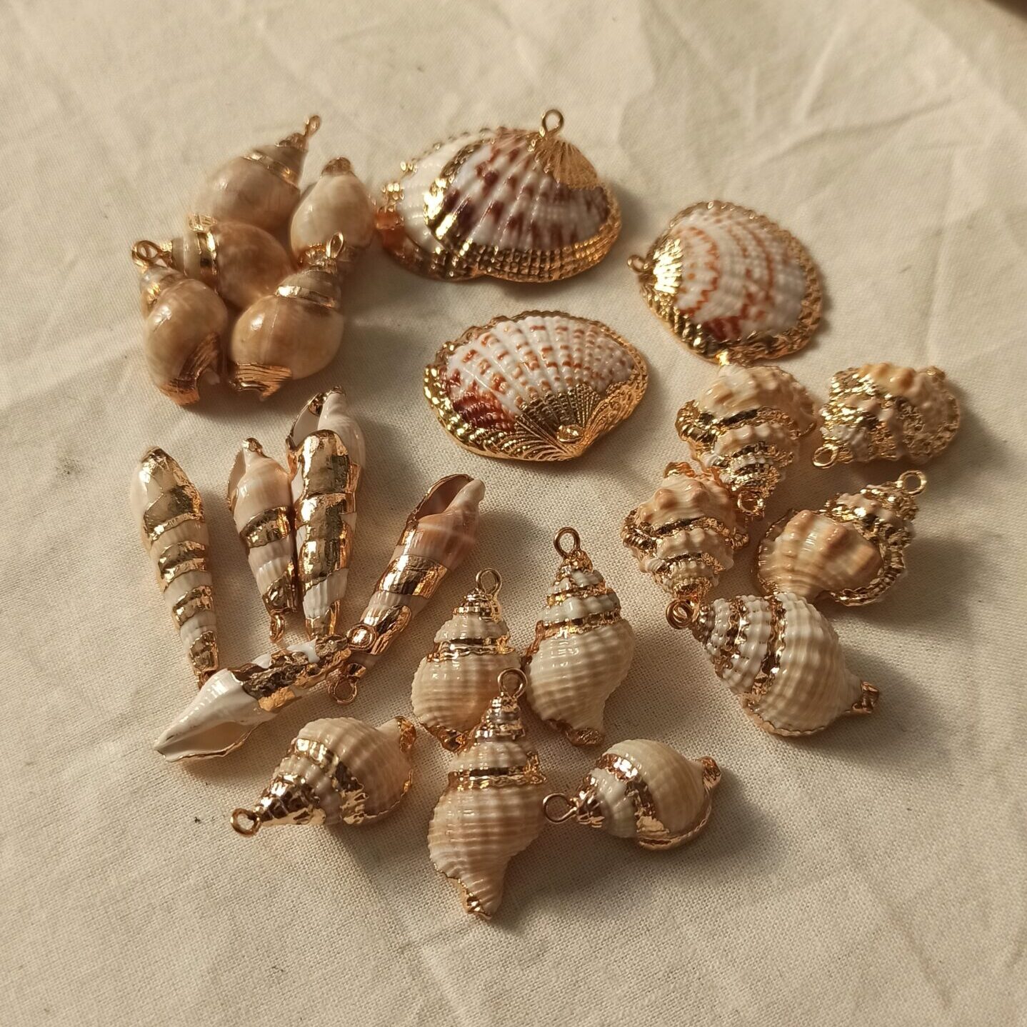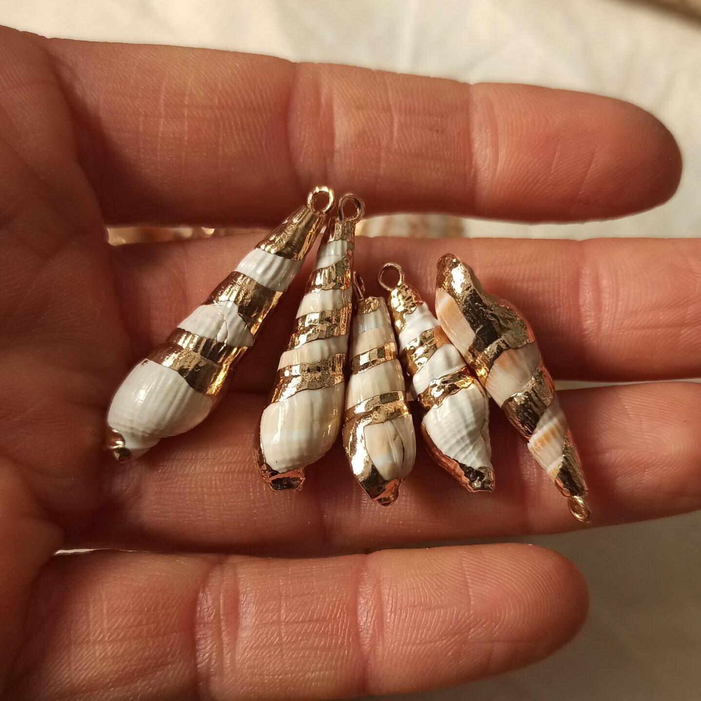 Conchiglia con bordatura in ottone dorato idelae per la realizzazione di collane decorate e bigiotteria.
