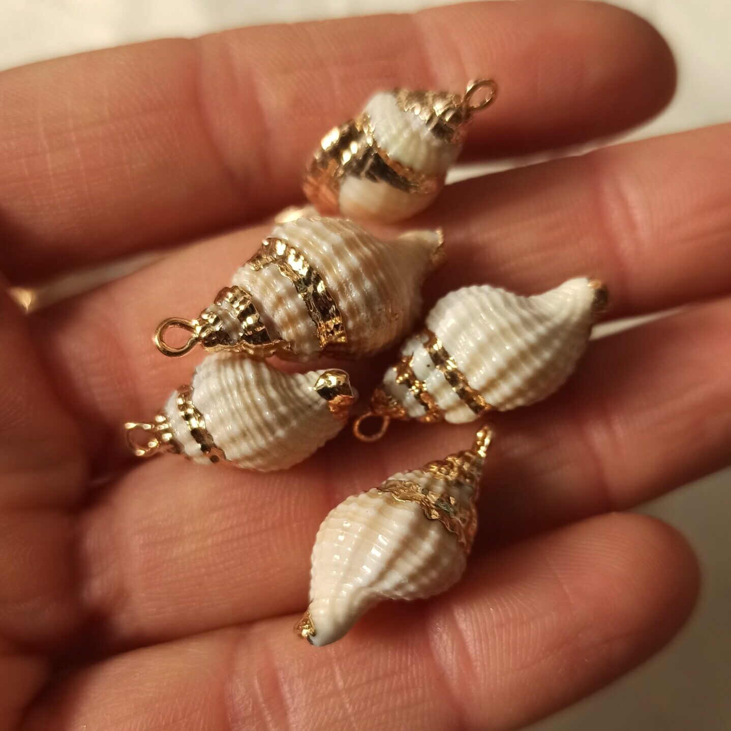Conchiglia con bordatura in ottone dorato idelae per la realizzazione di collane decorate e bigiotteria.