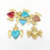 Ciondolo cuore sacro con ali acciaio dorato smaltato