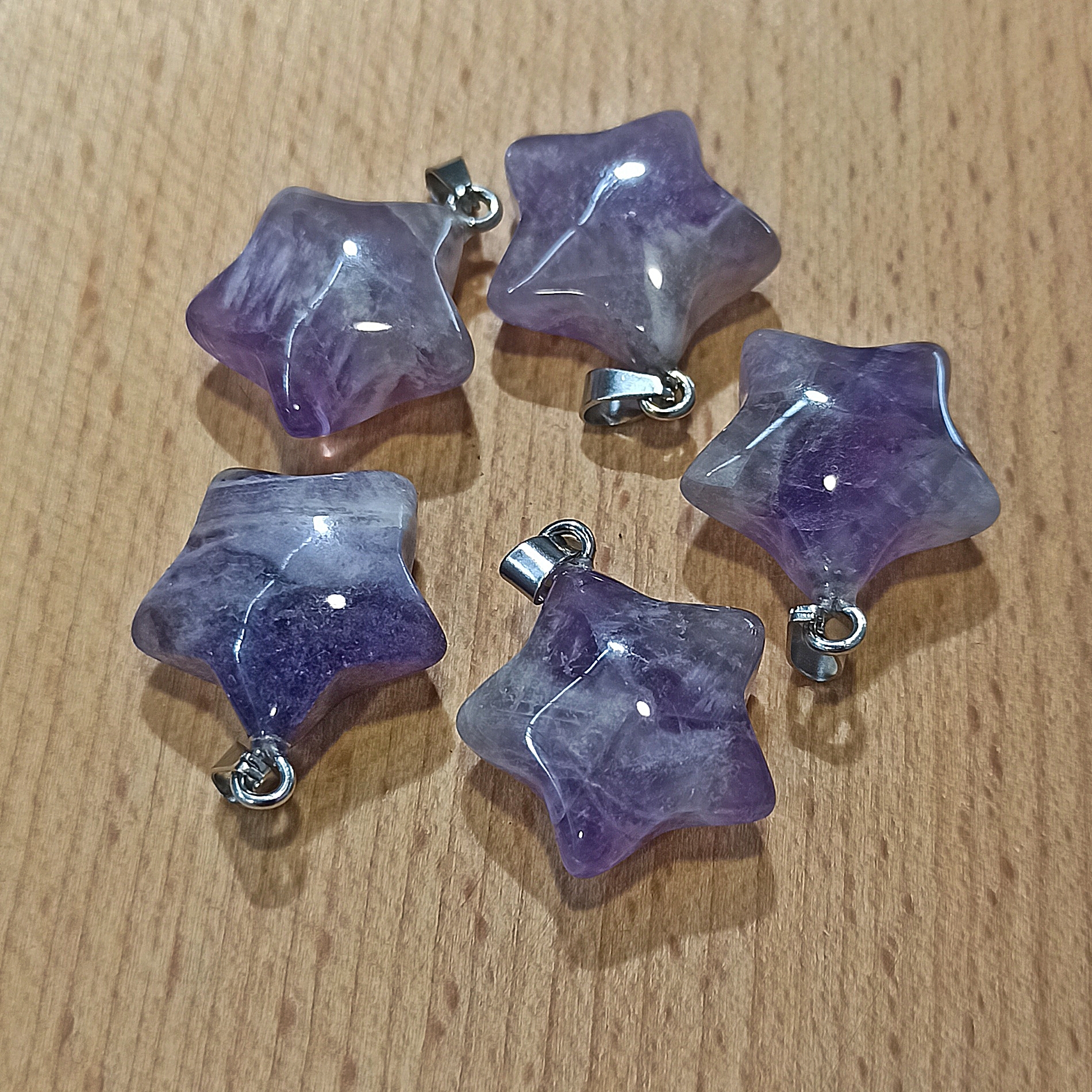 Ciondolo a forma di stella in ametista con gancetto in acciaio per catenina.