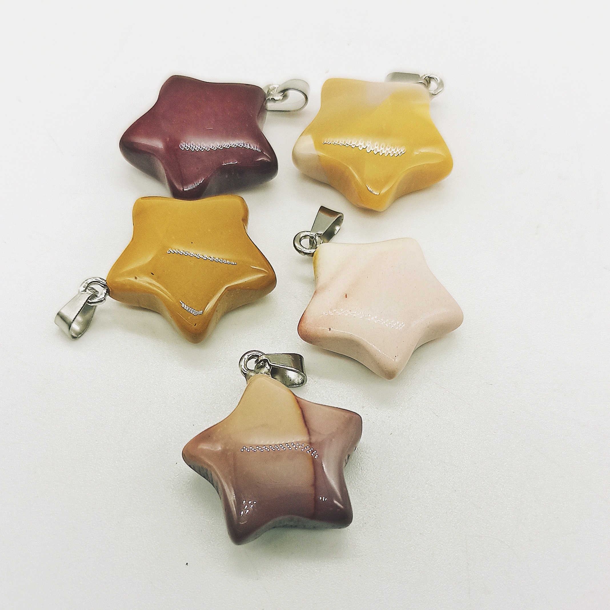 Ciondolo a forma di stella in mookaite con gancetto in acciaio per catenina.