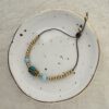 Collana realizzata a mano con sfere in ottone e tibetana turchese bordata centrale.