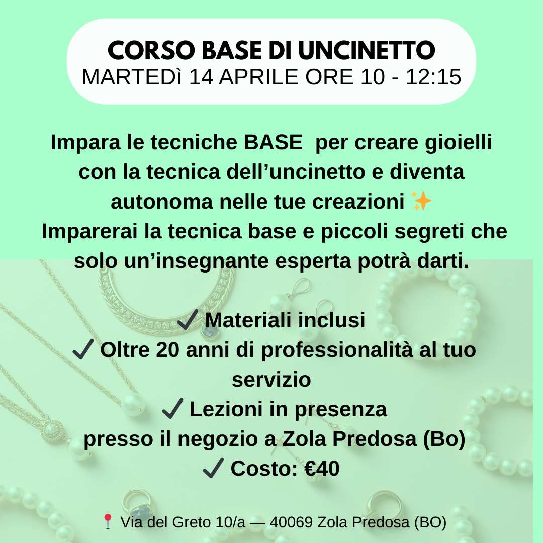 Un corso base per imparare le prime tecniche di lavorazione all’uncinetto dedicate alla creazione di gioielli.