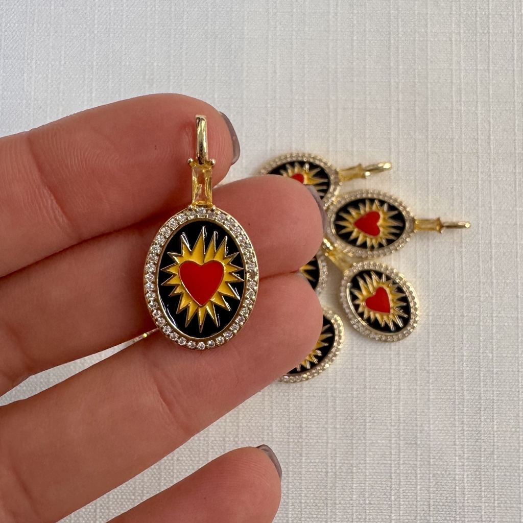Ciondolo in ottone smaltato con cubic zirconia