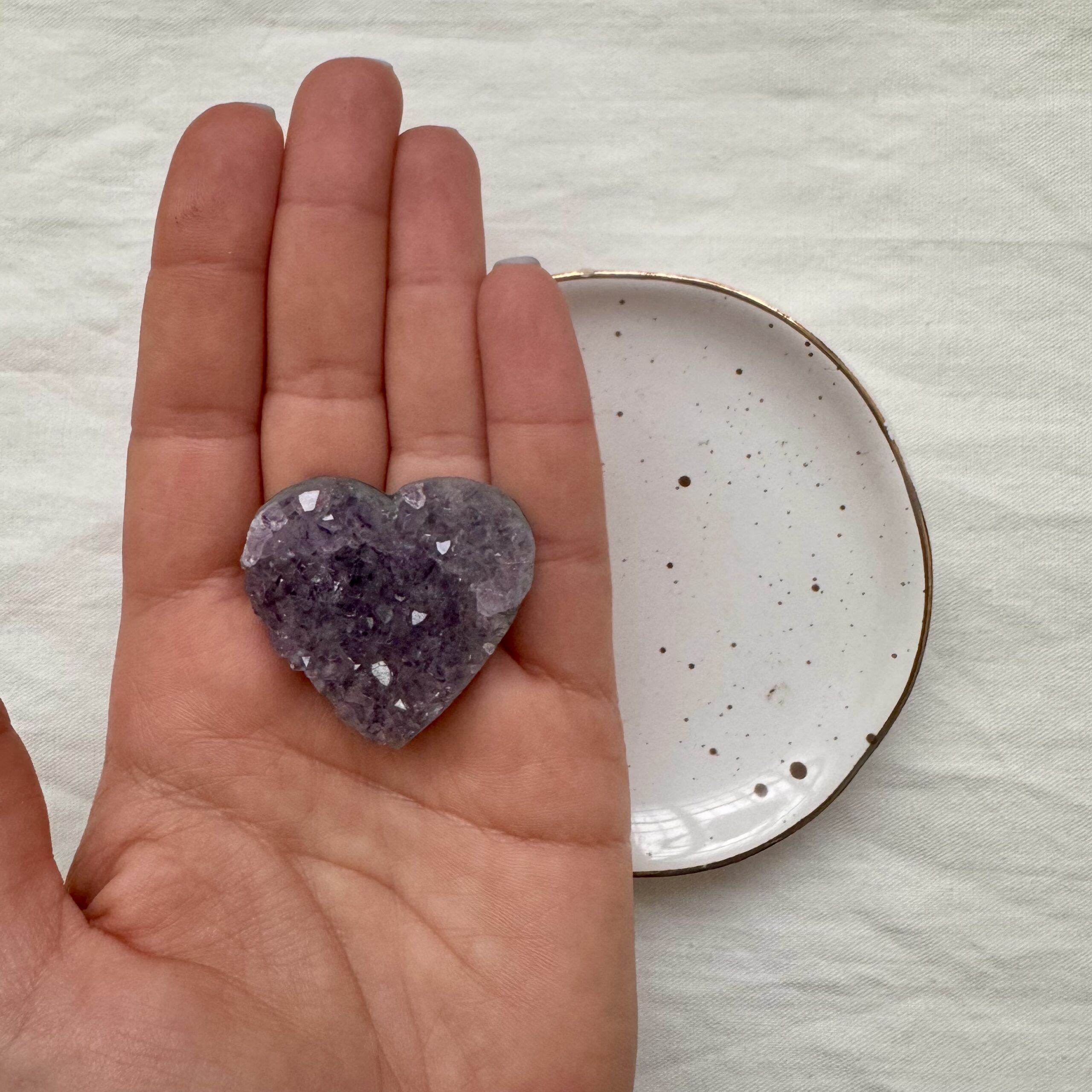 La drusa di ametista è una formazione naturale di piccoli cristalli di ametista cresciuti insieme su una base comune, e viene molto usata sia come pietra energetica sia come “purificatore” degli ambienti. Pulisce, calma, protegge e armonizza l’energia di uno spazio.