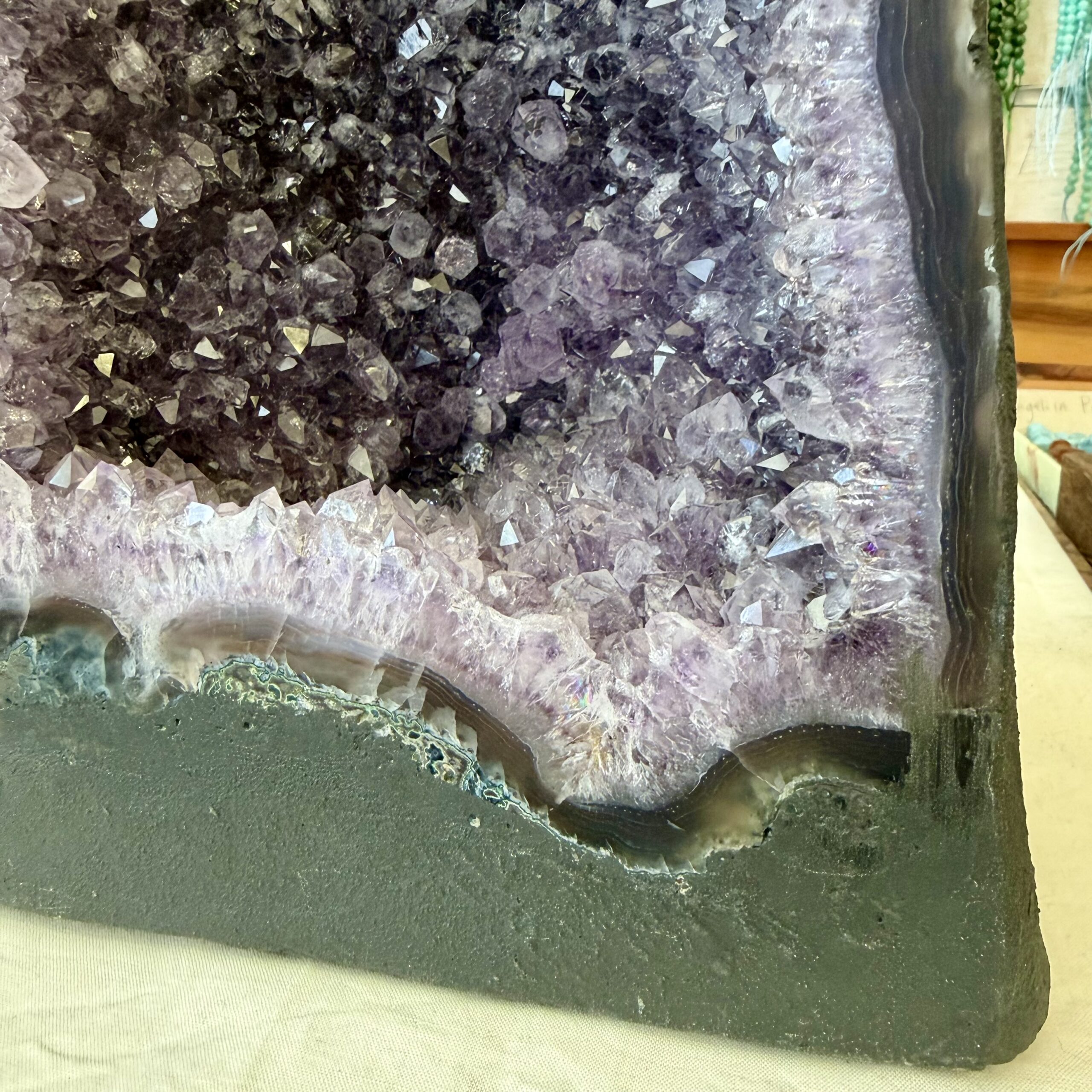 Avere una drusa di ametista in casa, in ufficio o nello studio significa scegliere una presenza che armonizza lo spazio.