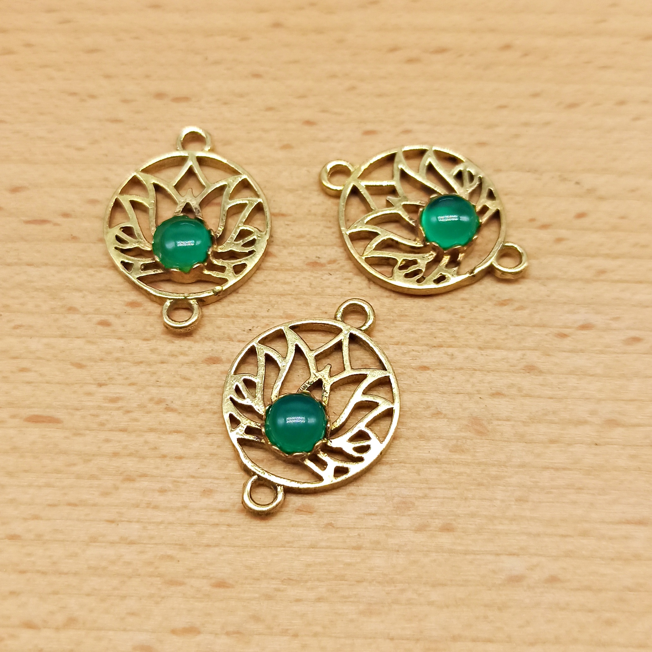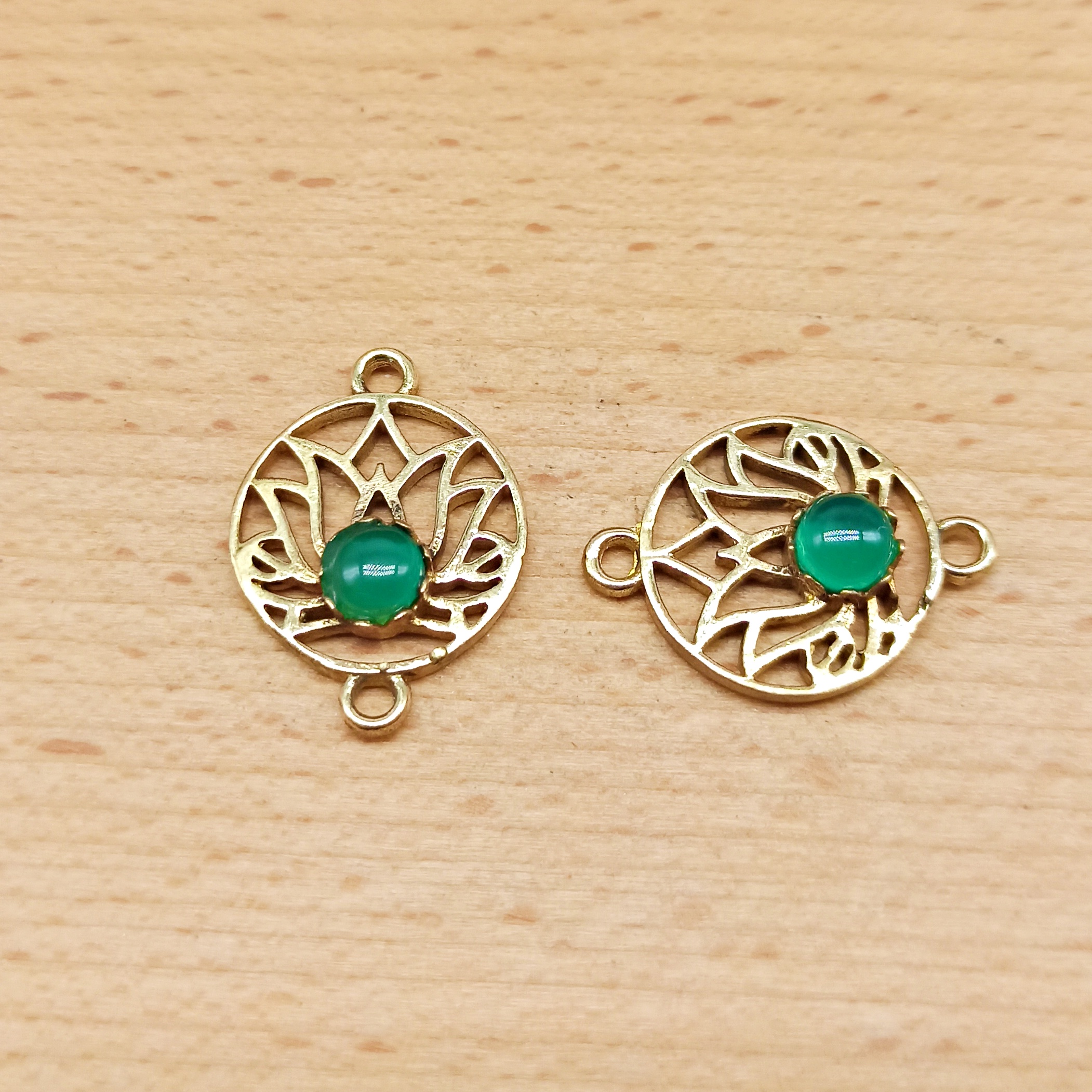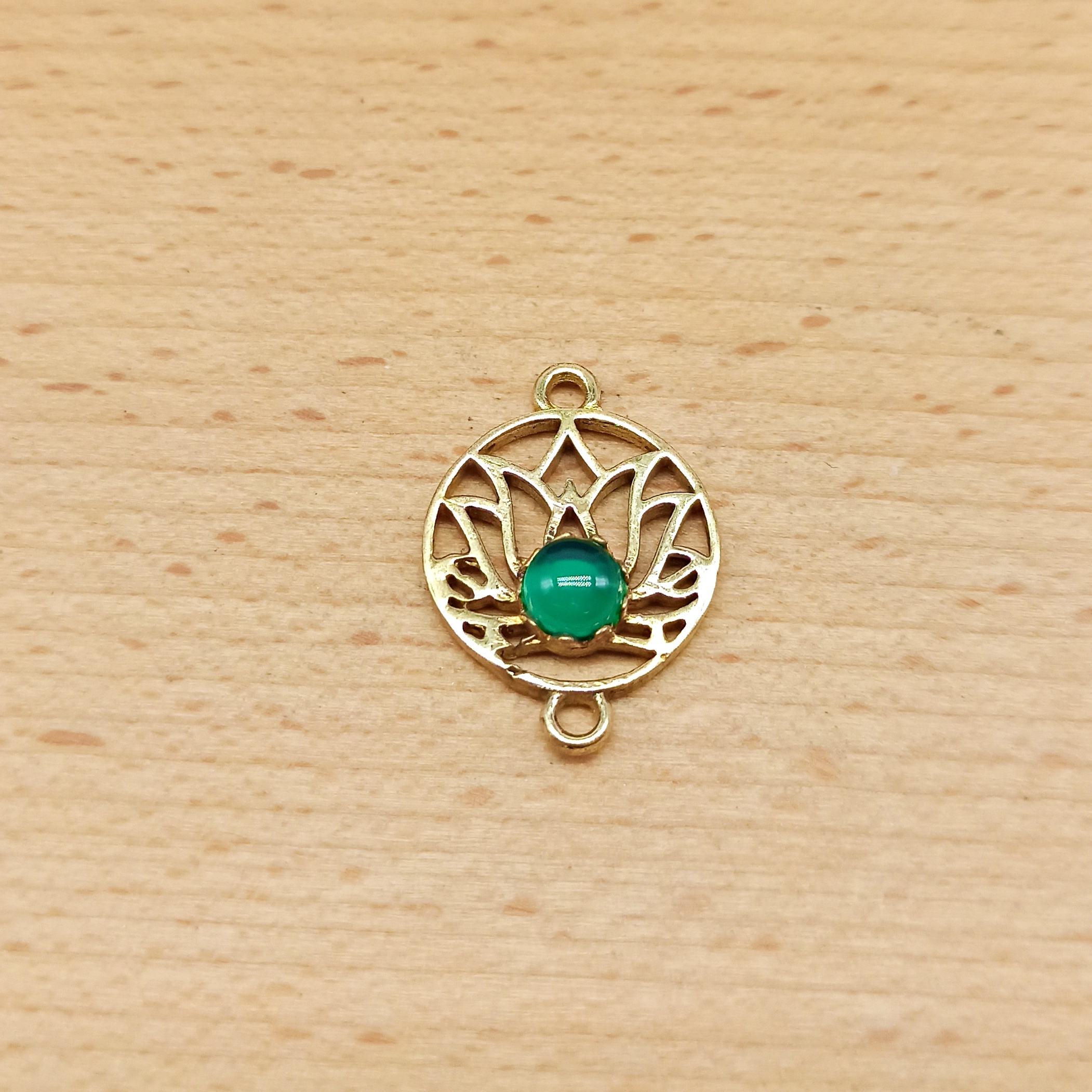 Connettore in ottone con cabochon in pietra dura, perfetto per il macramè.