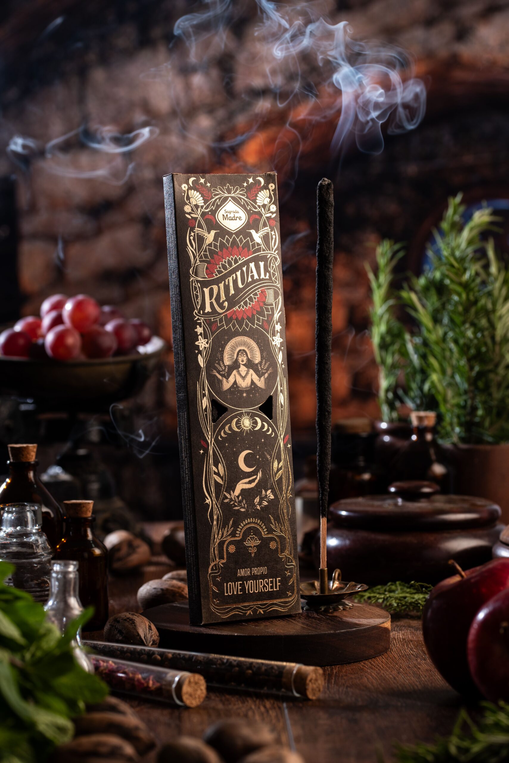 Modo d’uso: accendere la punta del bastoncino con un fiammifero o un accendino, soffiare sulla fiamma e posizionarlo sul porta incenso e lasciarlo bruciare.