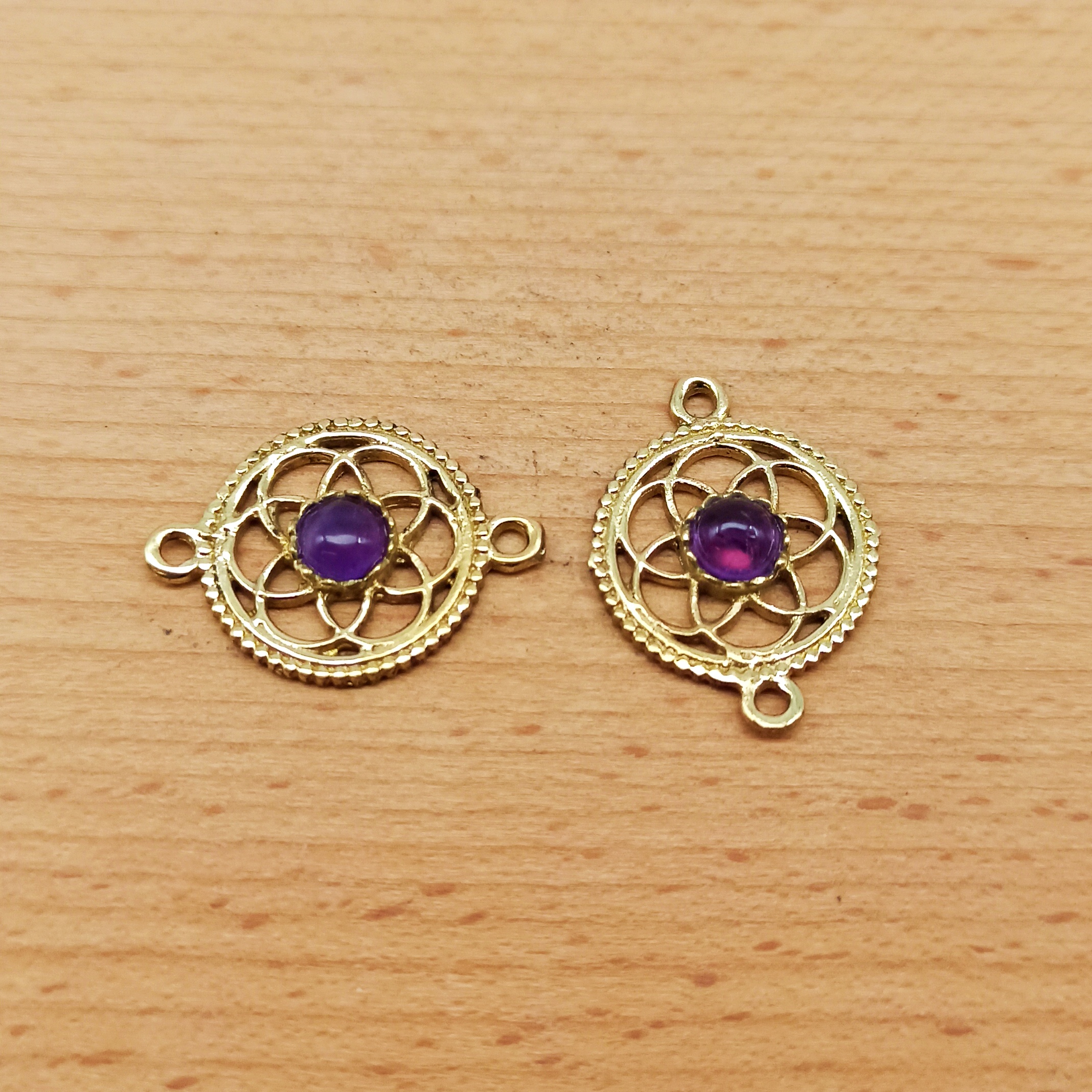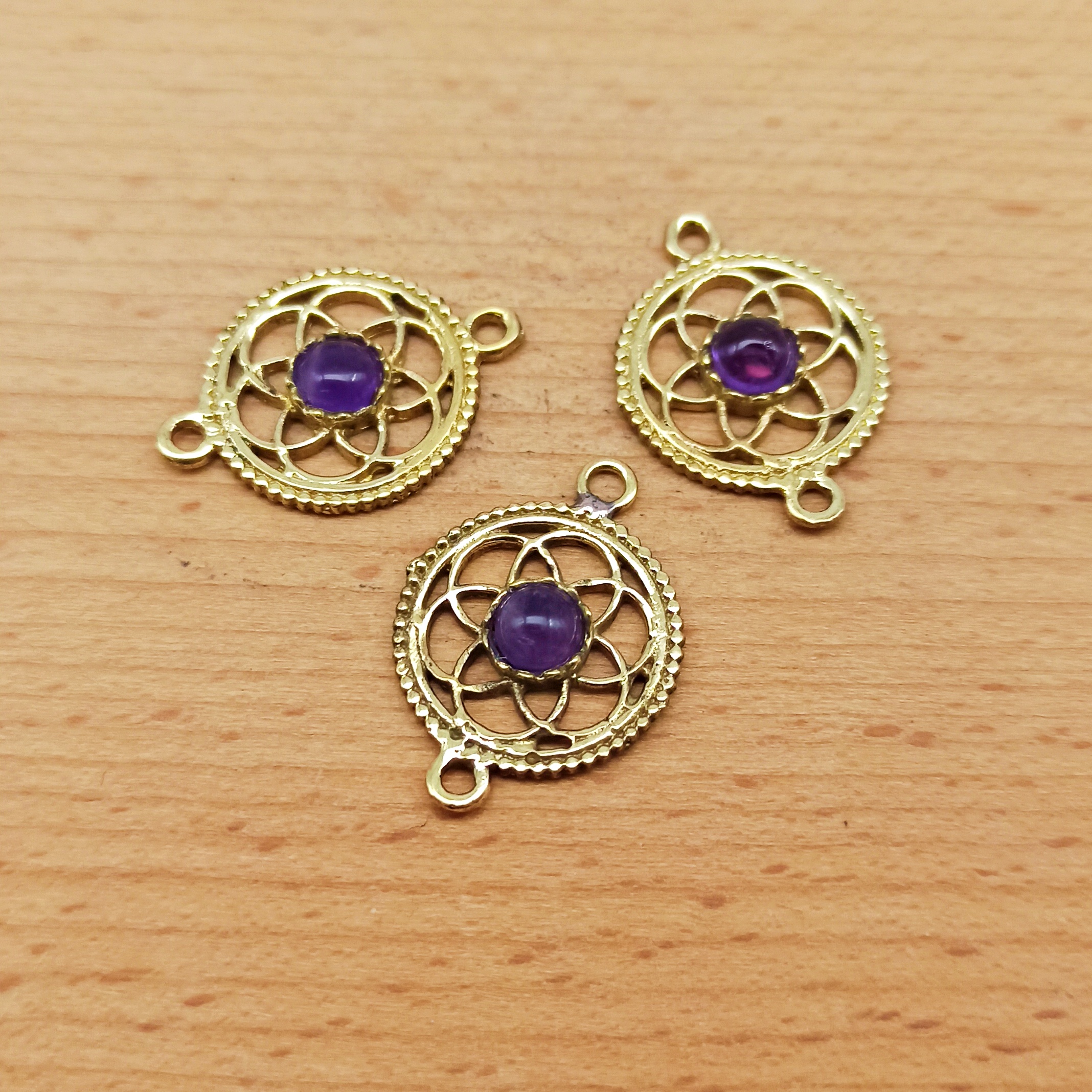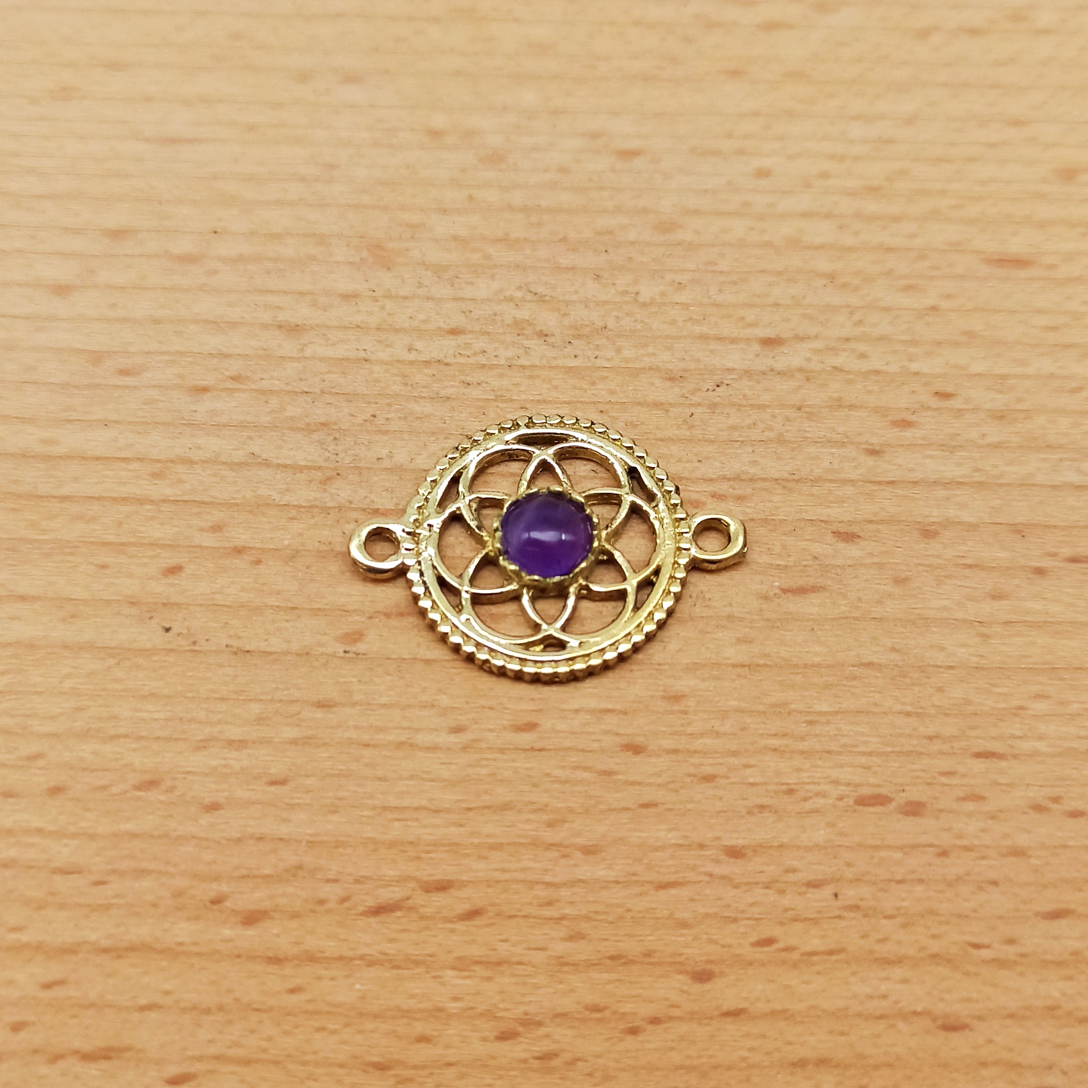 Connettore in ottone con cabochon in pietra dura, perfetto per il macramè.
