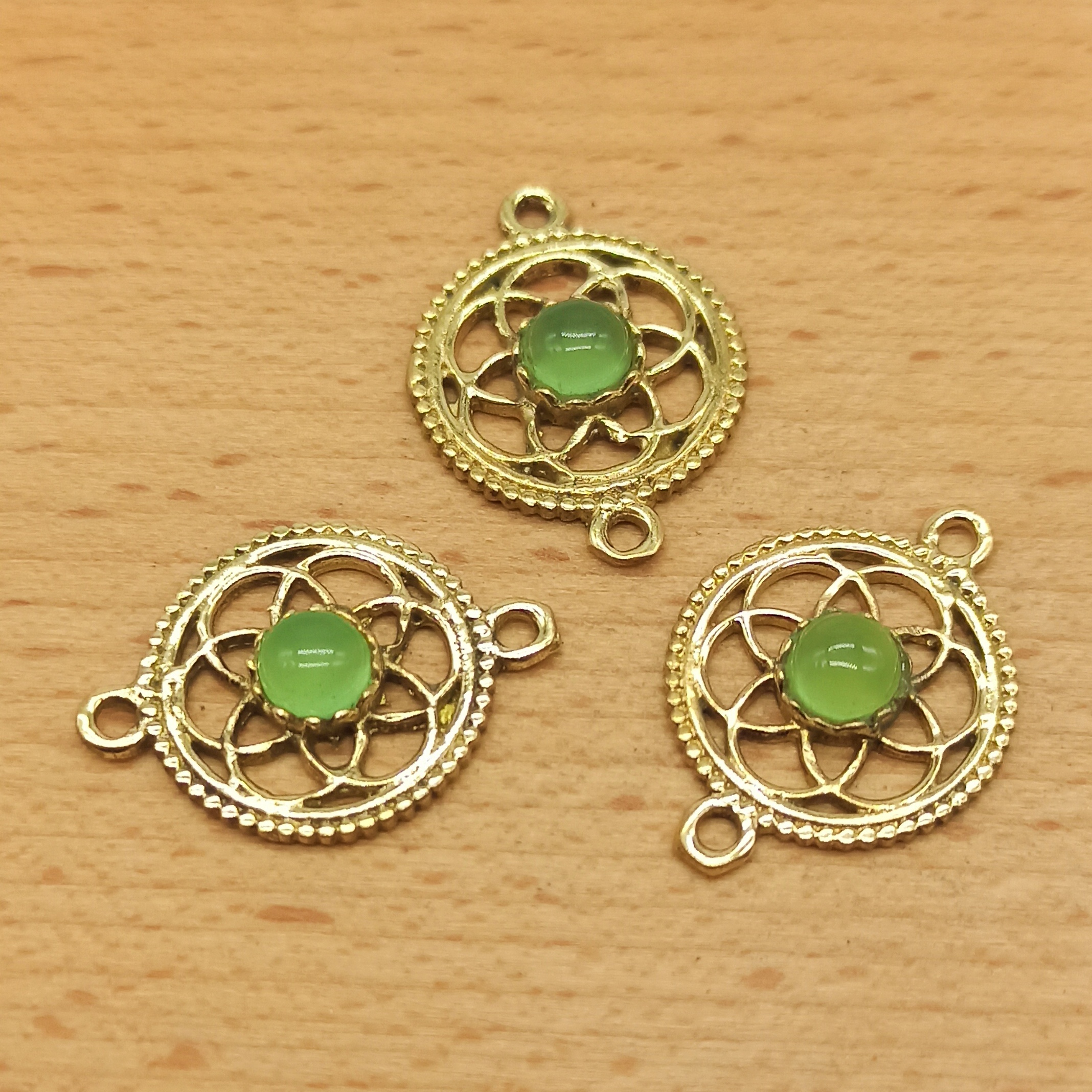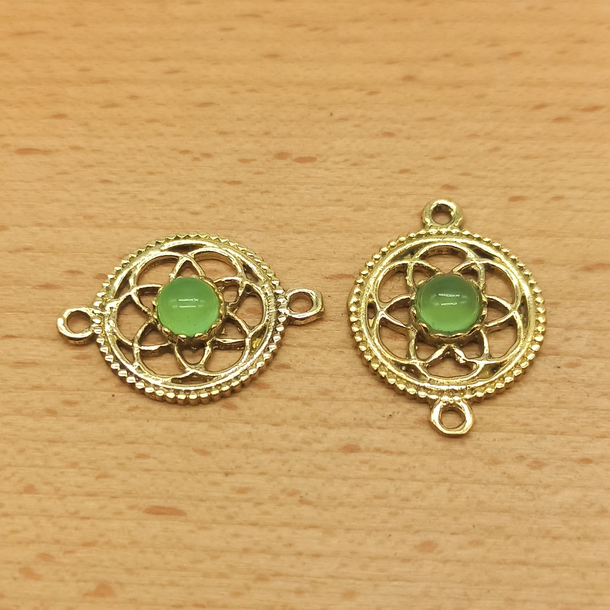 Connettore in ottone con cabochon in pietra dura, perfetto per il macramè.