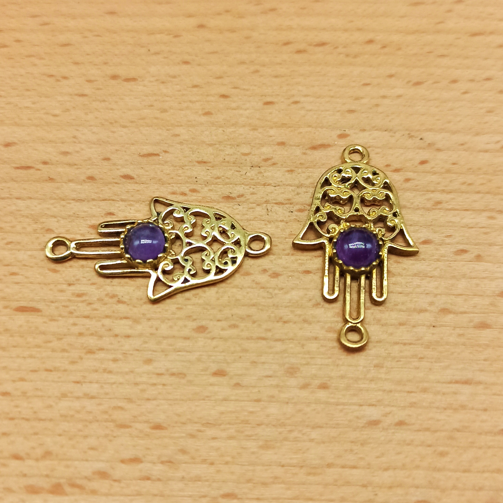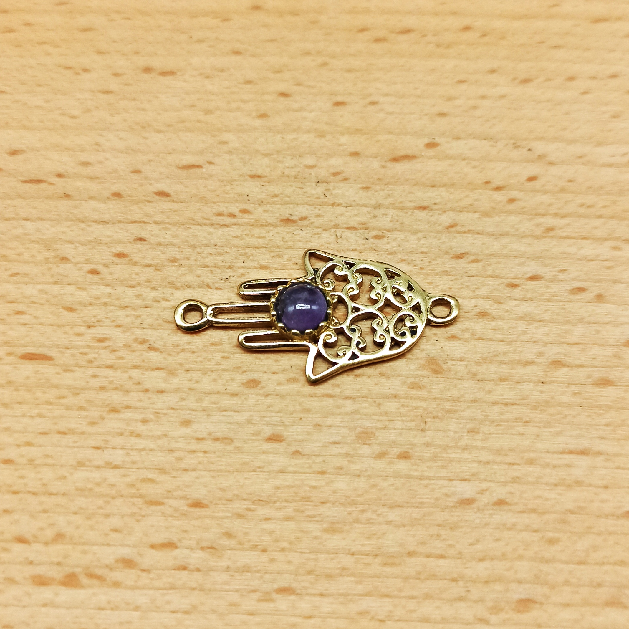 Connettore in ottone con cabochon in ametista, perfetto per il macramè.