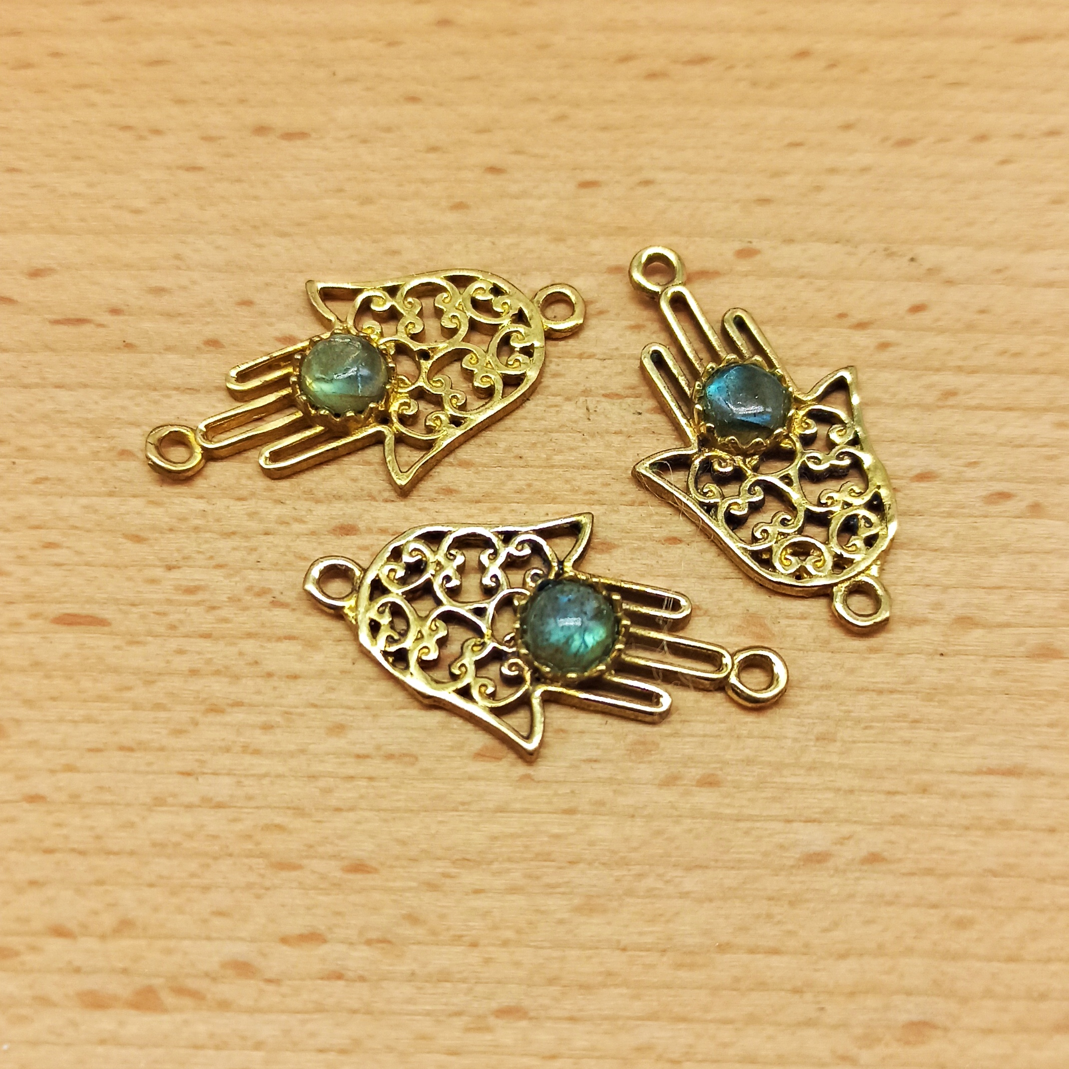 Connettore in ottone con cabochon in pietra dura, perfetto per il macramè.