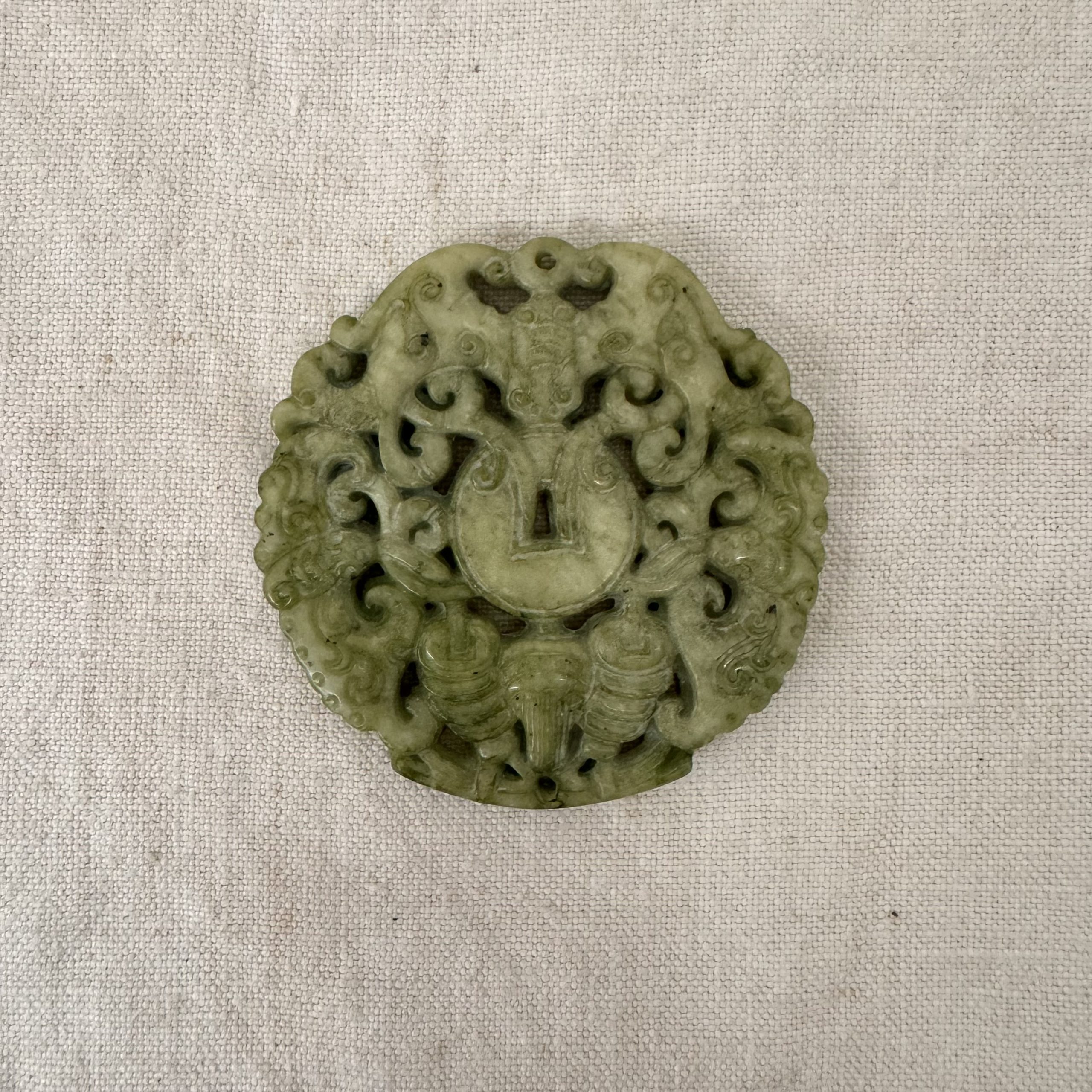 Medaglione in giada color verde chiaro.