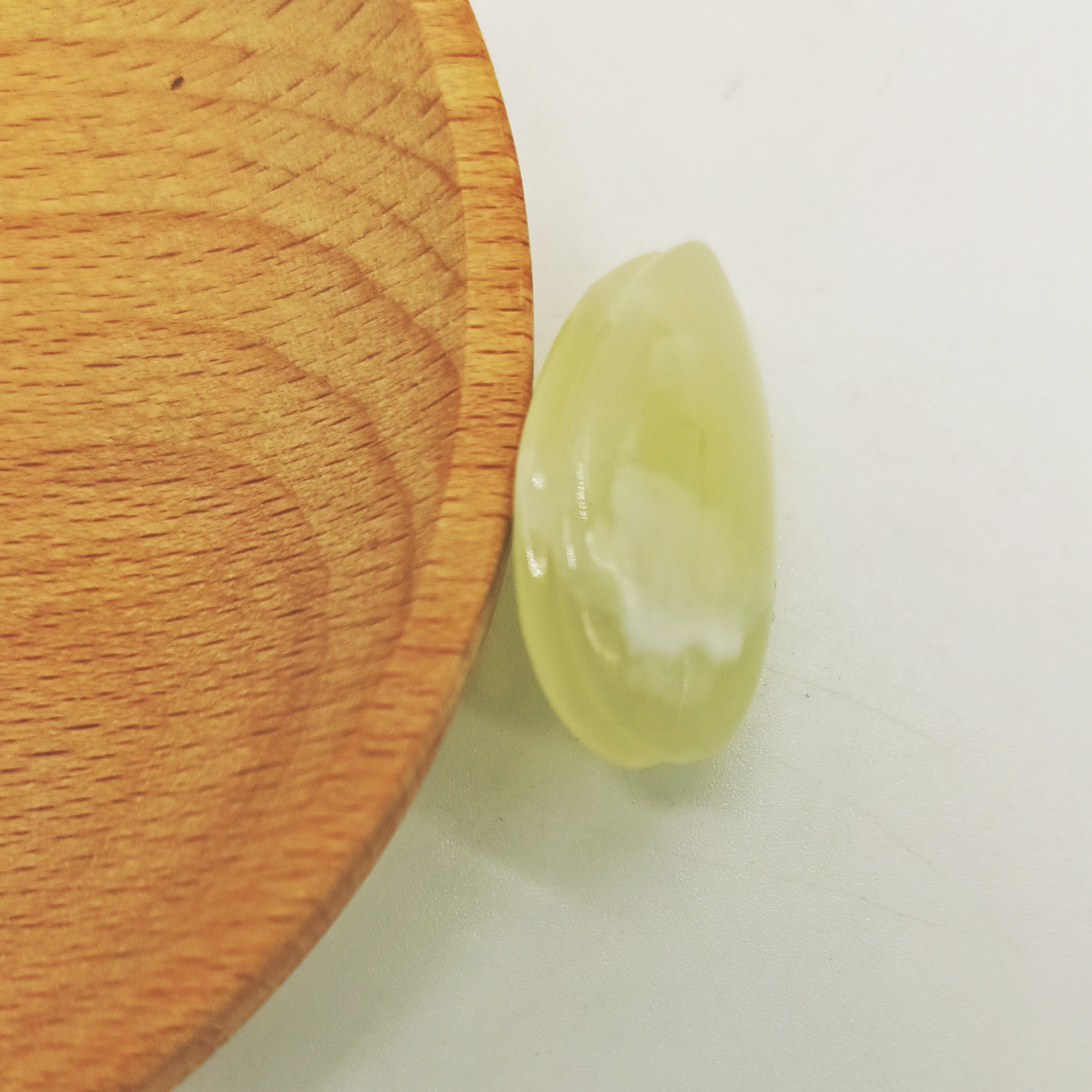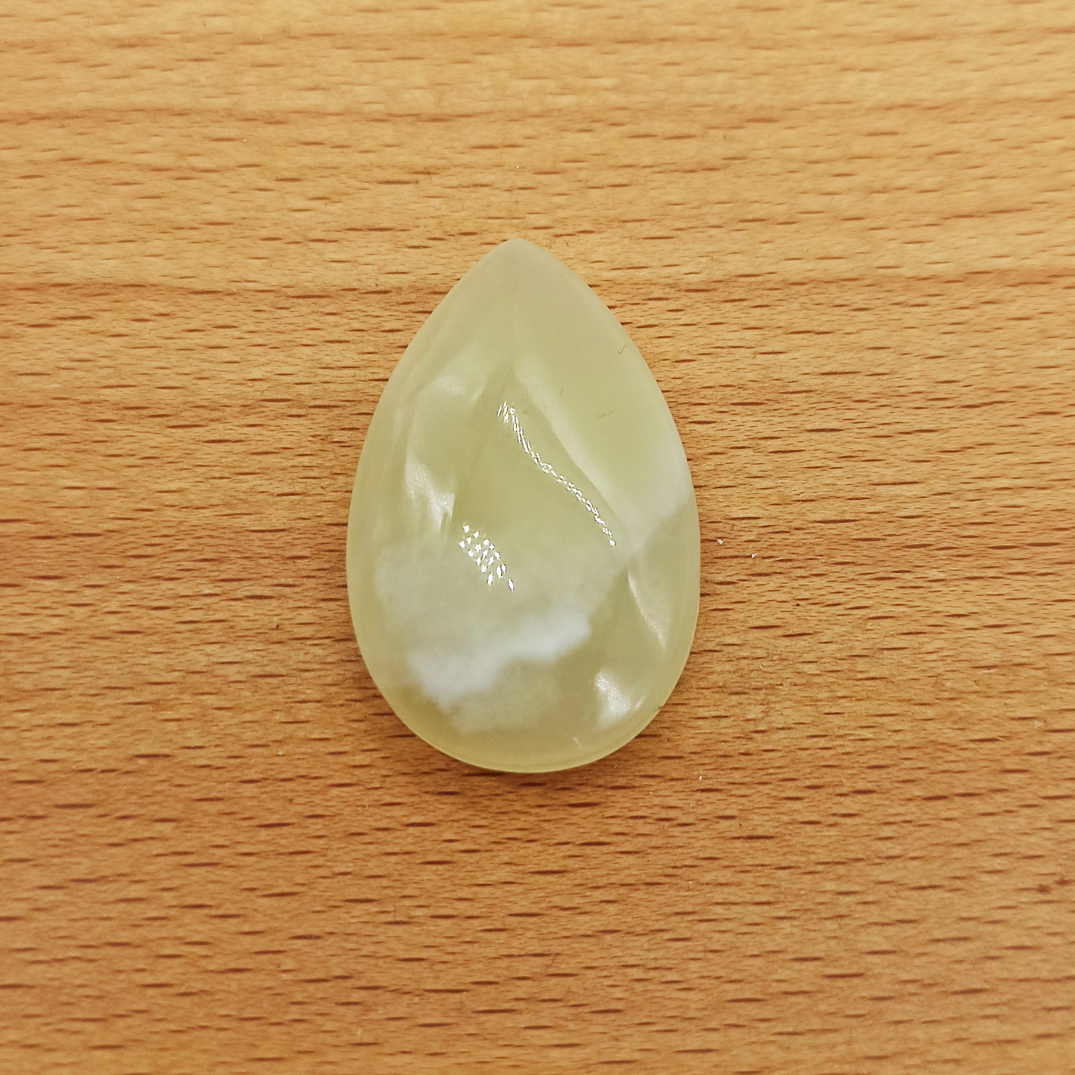 Pietra di onice naturale con fessura laterale per incastonatura tramite tecnica macramè.