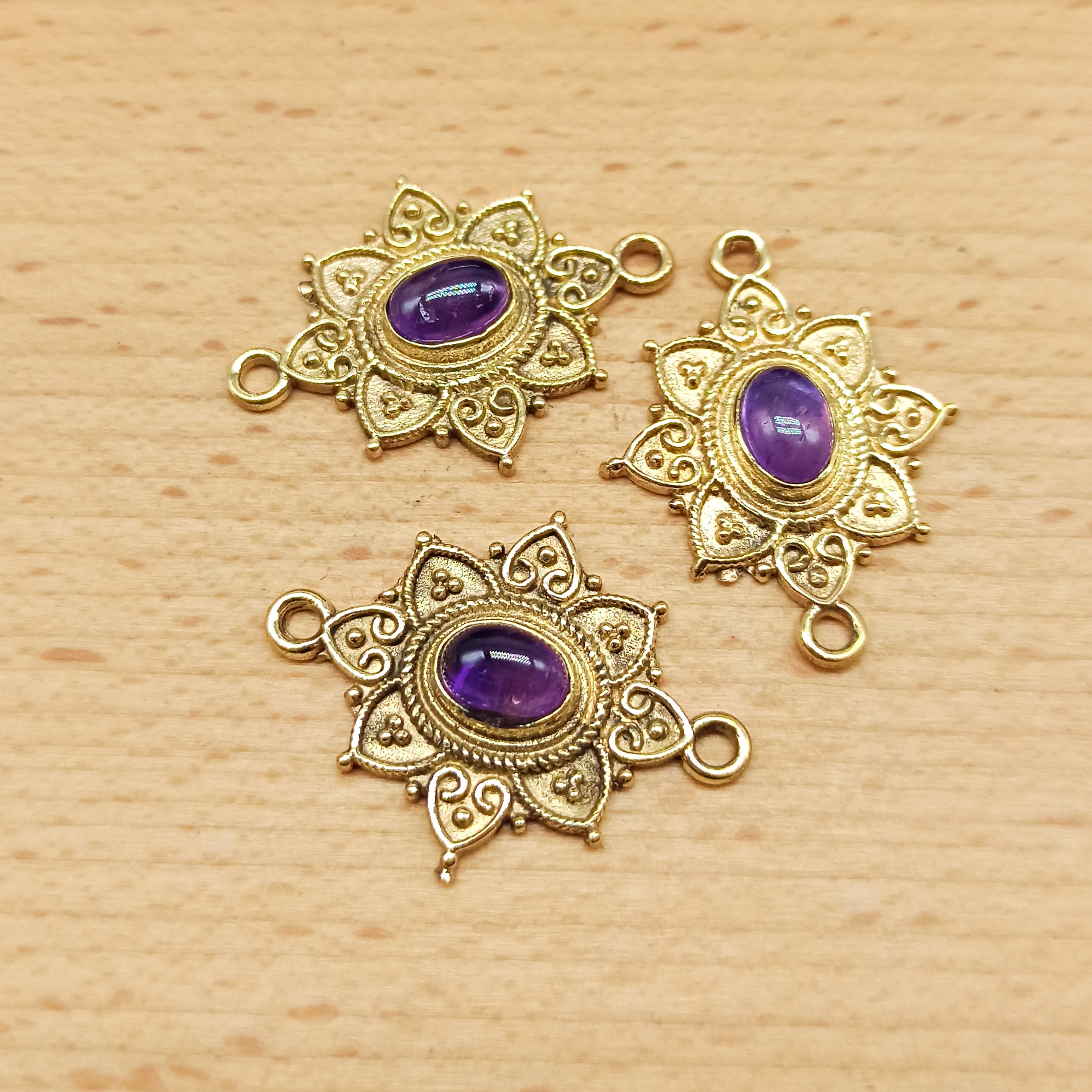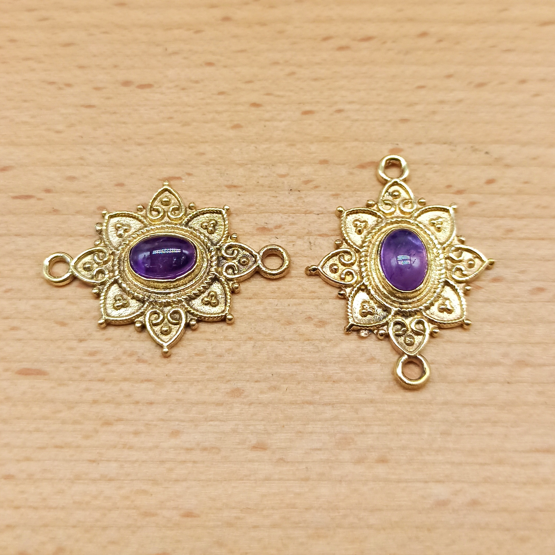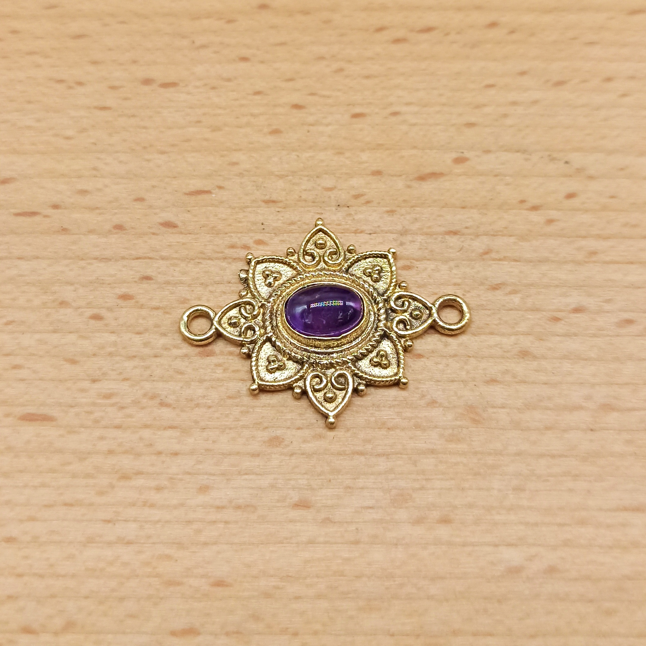 Connettore in ottone con cabochon in pietra dura, perfetto per il macramè.