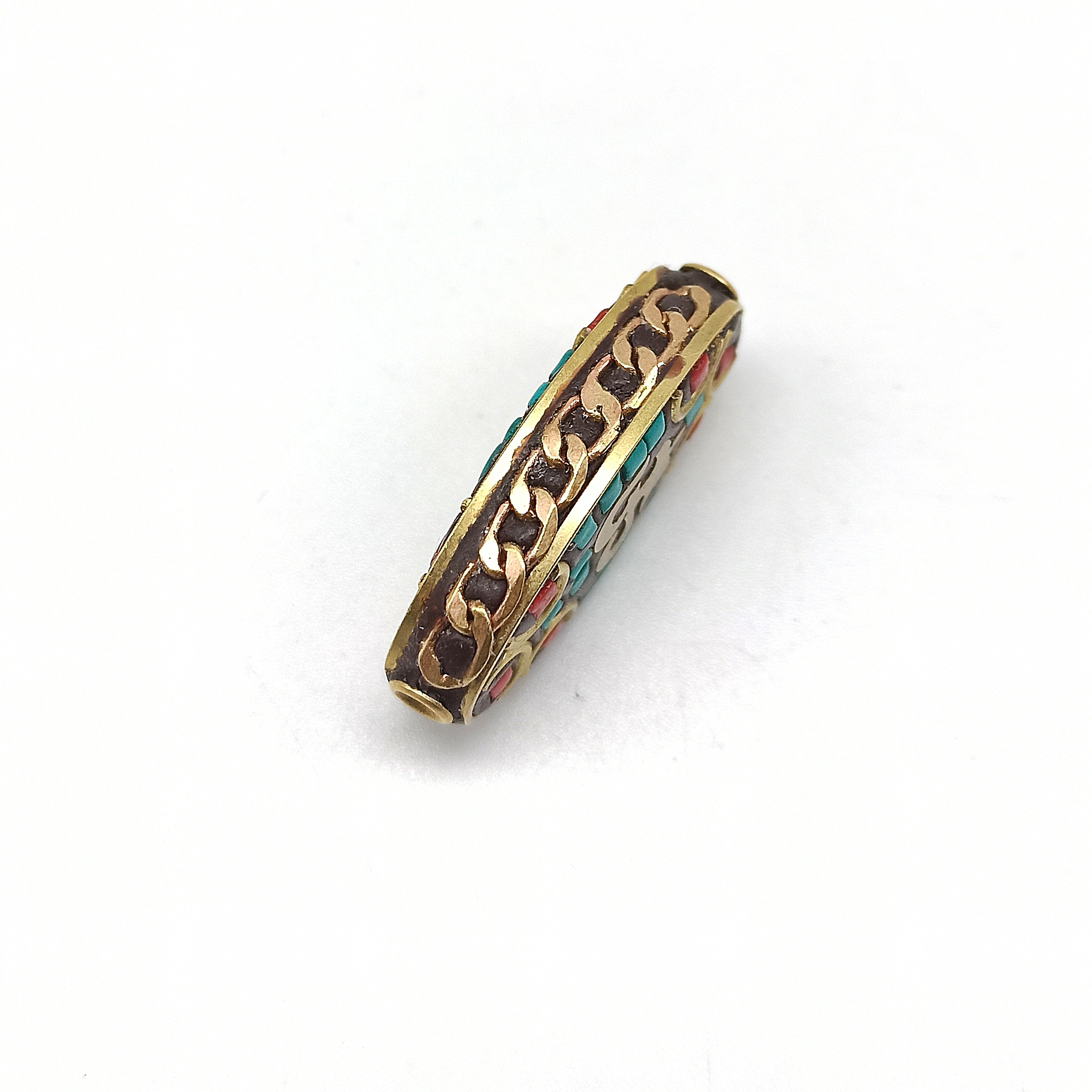 Perle tibetane, lavorazione artigianale con intarsi in ottone e incastonature in pietre naturali