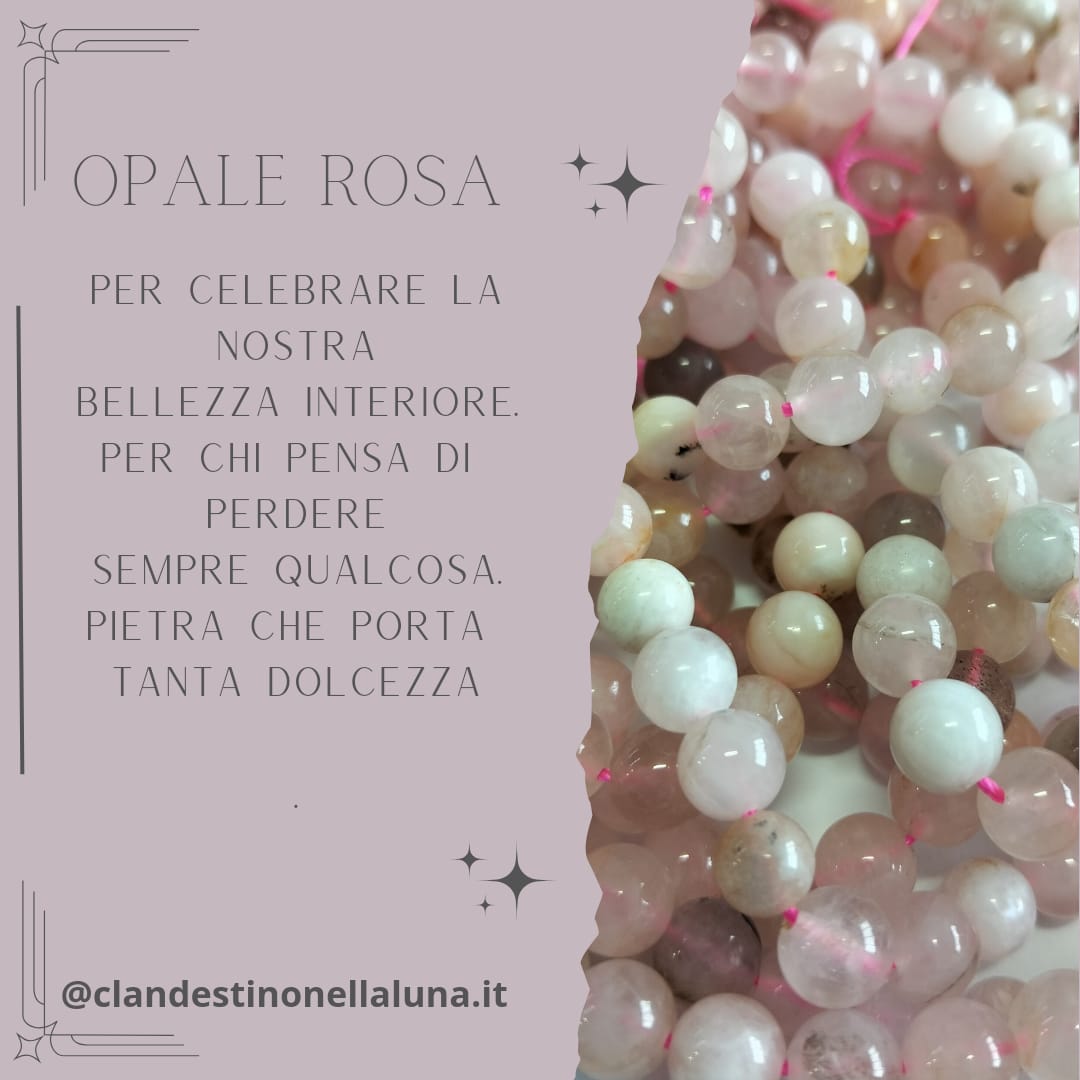 L’opale rosa è una pietra associata all’amor proprio, alla compassione e al perdono verso sé stessi.