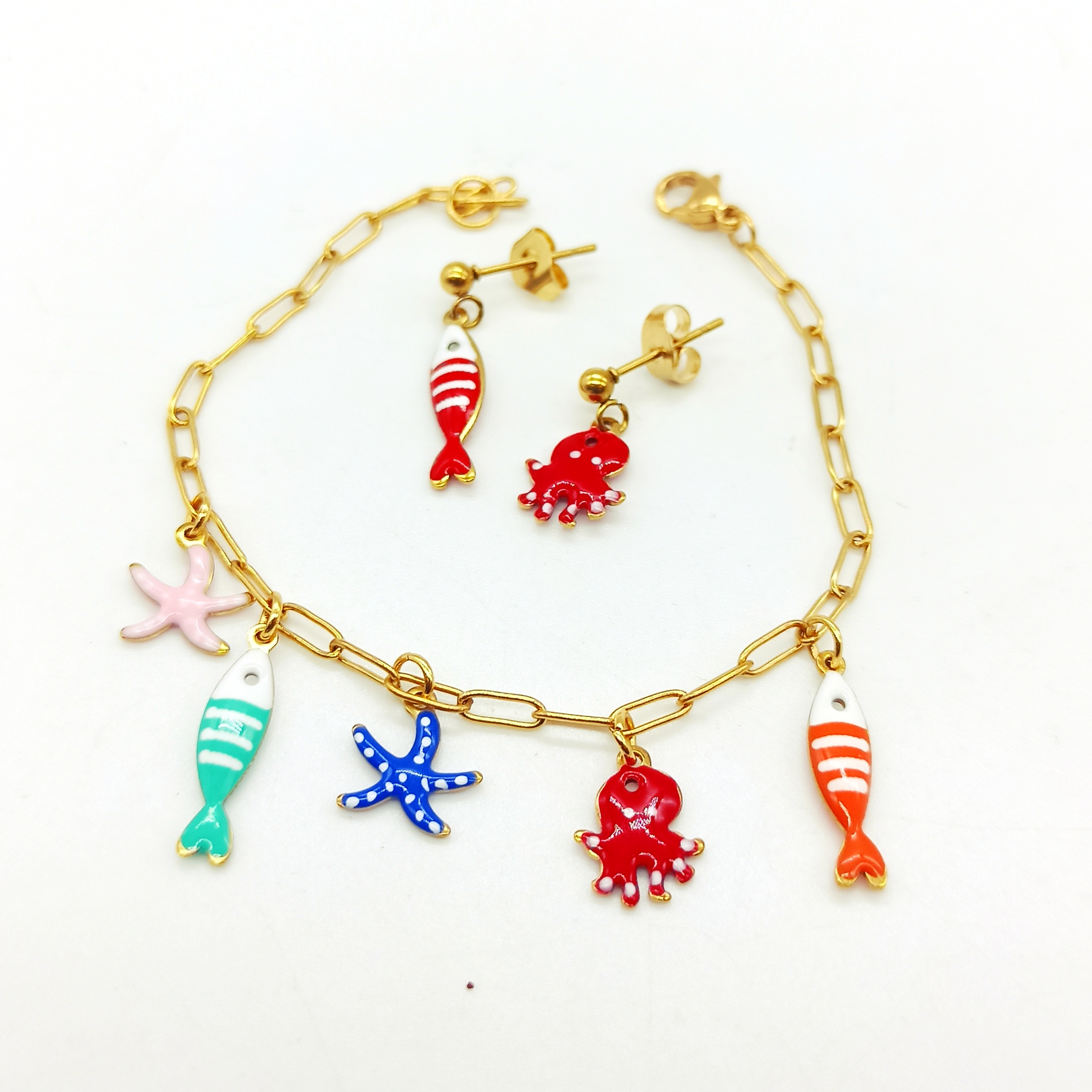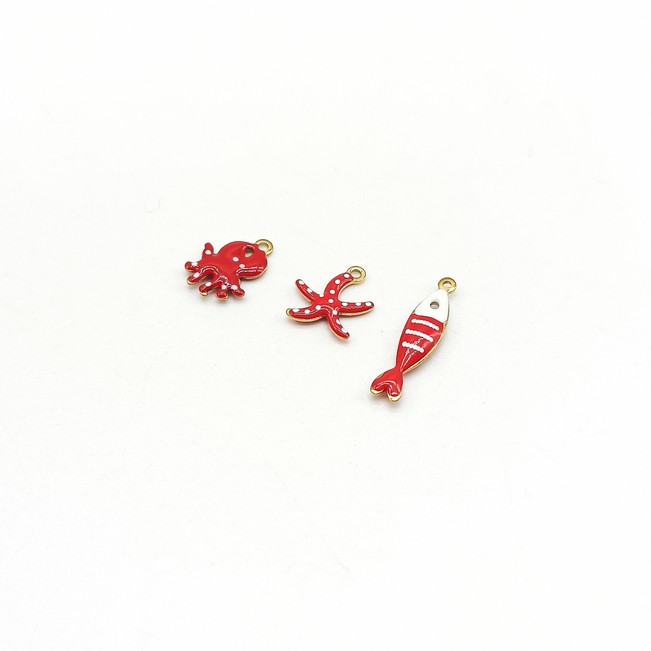 Tris di ciondoli in acciaio smaltati.