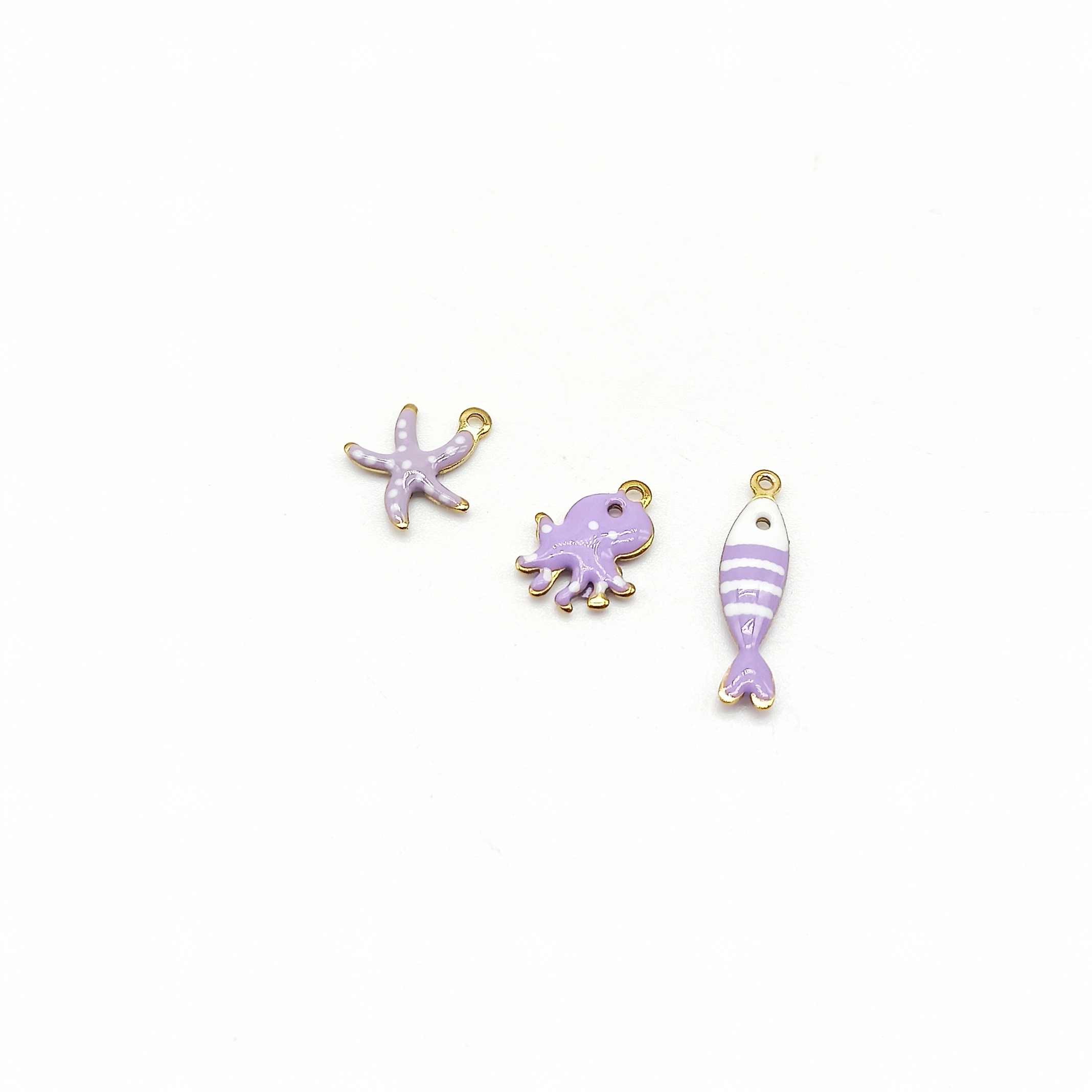 Tris di ciondoli in acciaio smaltati.